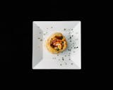 A sauceless pie topped with ricotta, mozzarella, and parmesan cheese